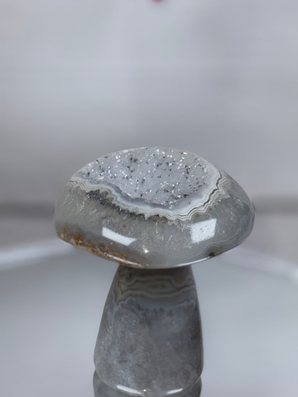 Elevate your collection with a beautifully carved Agate mushroom, chosen for its natural banding, earthy tones, and polished, sculptural charm. Agate is celebrated for its refined aesthetics and timeless appeal, making this whimsical carving a perfect accent for collectors and home décor enthusiasts who appreciate both beauty and craftsmanship.