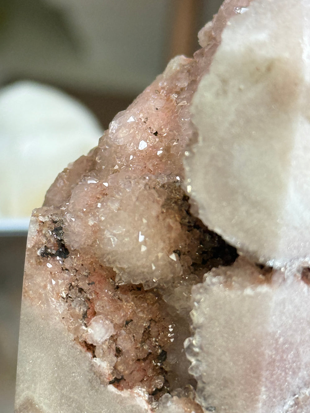 Sourced from Brazil, Pink Amethyst is treasured by collectors for its soft but vivid pink hues and occasional druzy-lined cavities. This charming tower is perfect for curated shelves, desk décor, or as a delicate accent in any crystal collection.